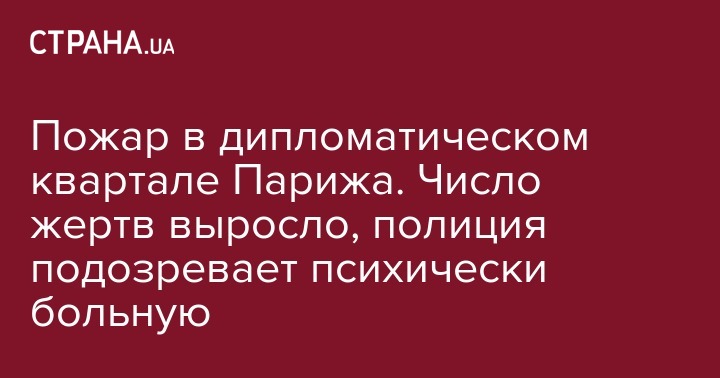 Пожар в дипломатическом квартале Парижа. Число жертв выросло, полиция подозревает психически больную