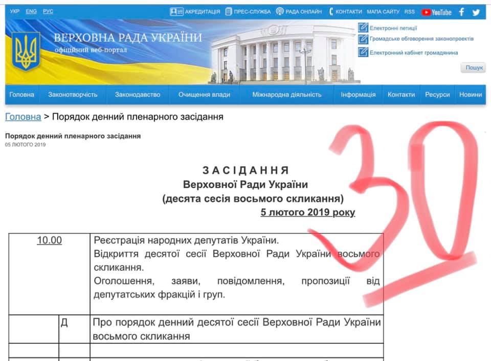 На заседании во вторник, 5 февраля, депутаты Верховной Рады рассмотрят вопрос о моратории на проверки СМИ в предвыборный период тридцатым по счету. Об этом сообщает глава Национального союза журналистов Украины Сергей Томиленко на своей странице в Facebook.
