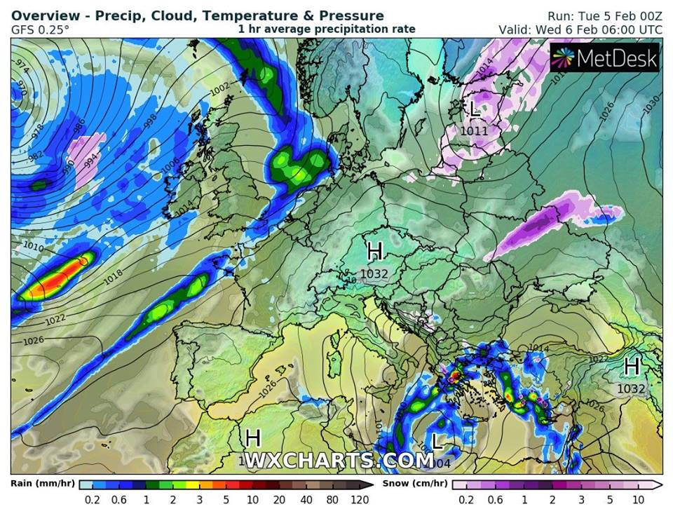 Ближайшей ночью ожидается -1...-4 градуса, днем 6 февраля: ​​0...+3 градуса. В южной части страны ночью 0...+3 градуса, днем: ​​+4...+9 градусов. В Киеве среда будет с мокрым снегом, во второй половине дня осадки прекратятся. На дорогах гололедица. Ночью в столице -1...-3 градуса, днем ​​6 февраля: 0...+2 градуса.