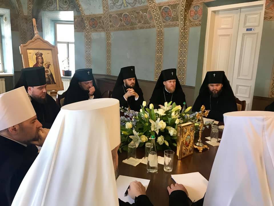 Встреча проходит в Доме митрополита Епифания под его предводительством. За круглым столом собралось около 11 священнослужителей. Филарет сидит по правую руку от Епифания. На столе - позолоченные кресты и иконы, блокноты, вода, бумага и ручки для записей.