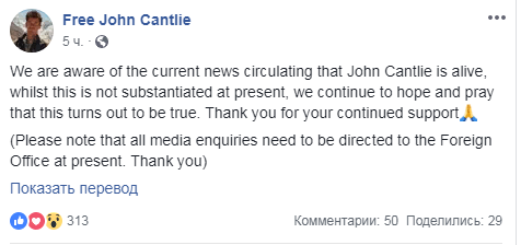 В Фейсбуке была создана группа, посвященная похищенному журналисту. Ее администраторы попросили направлять информационные запросы с вопросами о местонахождении журналиста в британский МИД.