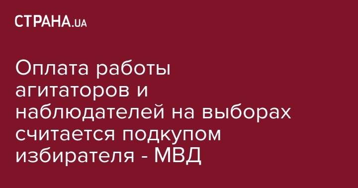 В МВД Украины напоминают об уголовной ответственности за оплату работы агитаторов и наблюдателей на выборах - такие нарушения избирательного законодательства полиция будет квалифицировать как подкуп избирателя.