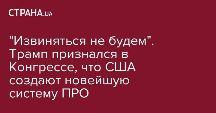 "Извиняться не будем". Трамп признался в Конгрессе, что США создают новейшую систему ПРО