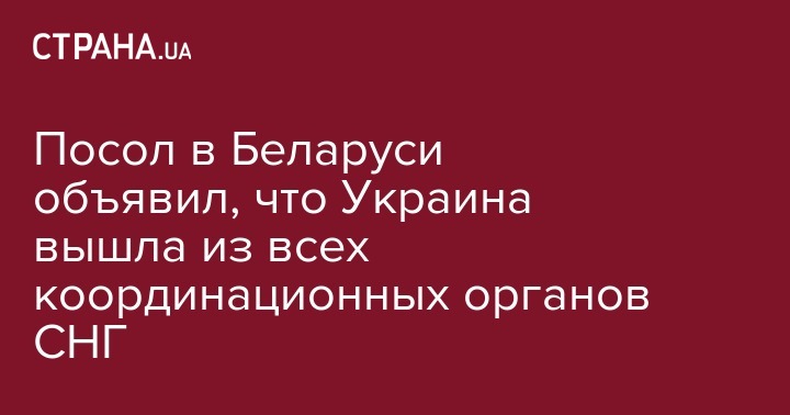 Посол Украины в Минске Игорь Кизим заявил о завершении процесса выхода Киева из координационных органов Содружества независимых государств.