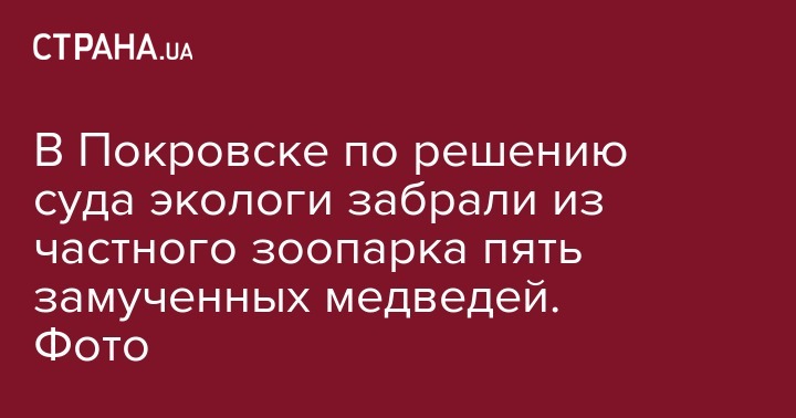 Красноармейский районный суд в Донецкой области поддержал ходатайство полиции и принял решение арестовать и изъять медведей, которые оставались в частном зоопарке. "Всего из зверинца в Покровске изъято 11 медведей и 5 львов. Животных перевезли в места временного пребывания (в Запорожскую область - Прим. Ред.)", - сообщили в Госэкоинспекции. По информации зоозащитников, в этом зоопарке животные содержались в тесных клетках, холоде и антисанитарных условиях.