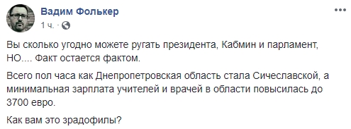 Всего пол часа как Днепропетровская область стала Сичеславской, а минимальная зарплата учителей и врачей в области повысилась до 3700 евро.
