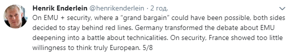 Он добавил, что Макрон сейчас сфокусирован на внутренней политике, что "понятно", учитывая обстановку во Франции, однако есть и все больше признаков "затяжного отчуждения" между Германией и Францией. "Это вызывает у меня тревогу", - сказал Ендерляйн.