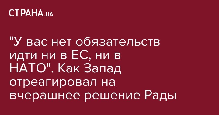 Представительство ЕС в Киеве заявило: "Каждое государство имеет суверенное право вносить изменения в свою Конституцию и определять свои стратегические цели. Как сказано в Соглашении об ассоциации Украина-ЕС, в Украине продвижение реформ и процесс сближения способствуют постепенной экономической интеграции и углублению политической ассоциации Украины с ЕС".