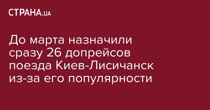 "Один из самых популярных поездов у наших пассажиров – "Киев-Лисичанск". В его составе - исключительно модернизированные вагоны купе и вагоны категории "люкс". Плюс - удобное расписание курсирования. На февраль - март мы назначили еще 26 дополнительных рейсов экспресса", - .сообщил Кравцов.