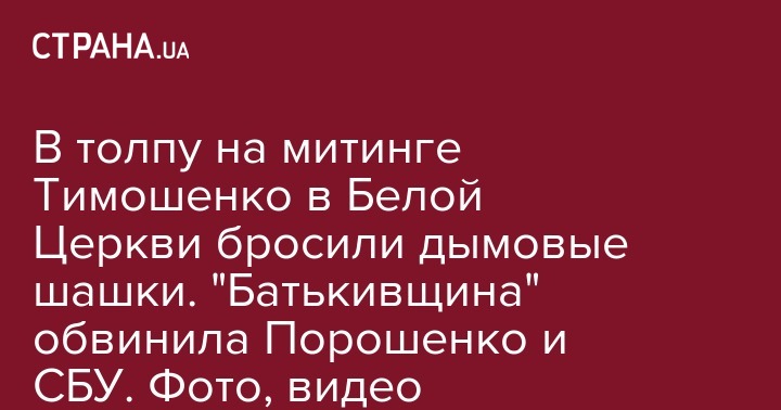 В пятницу, 8 февраля, в Белой Церкви Киевской области во время выступления кандидата в президенты Юлии Тимошенко на митинге неизвестные бросили в толпу людей семь дымовых шашек, полицейские задержали шестерых провокаторов. Об этом сообщает пресс-служба "Батькивщины".