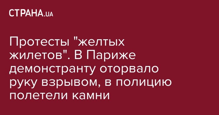 Особенно напряженная обстановка возле здания Национального собрания Франции. Во второй половине дня одному из протестующих оторвало часть руки взрывом гранаты. 30-летний мужчина из числа демонстрантов хотел отбросить гранату со слезоточивым газом, но она взорвалась у него в руке. Пострадавшего отвезли в больницу. Еще один "желтый жилет" был ранен в ходе потасовки с полицией после того, как как силовика ударили по лицу.