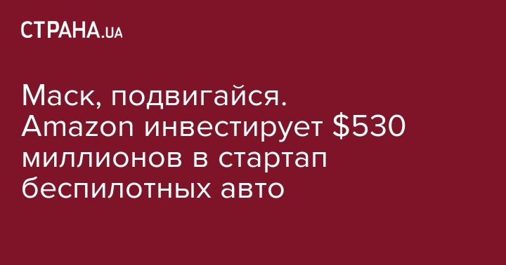 Руководство интернет-магазина Amazon инвестирует более полумиллиарда долларов США в стартап-компанию Aurora Innovation, занимающуюся технологией автомобильного автопилота под руководством бывших инженеров Google, Tesla и Uber. Об этом пишет "Новое время".