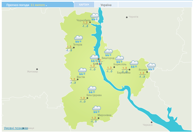 В понедельник, 11 февраля, в Украине будет тепло, но местами в регионах пройдут дожди. Об этом сообщает Укргидрометцентр.