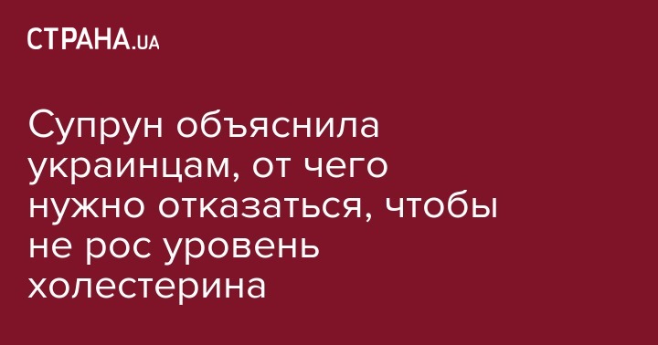 Глава Минздрава Ульяна Супрун сообщила, что высокий уровень холестерина в крови увеличивает риск сердечного приступа, ишемической болезни сердца, инсульта, атеросклероза.