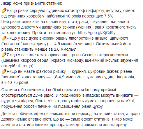 Если холестерин не в норме, то прежде всего врач должен посоветовать изменения в образе жизни. Прием статинов может быть рекомендован, если эти меры не помогают. Лучше контролируйте свой уровень холестерина регулярно, чтобы он потом не контролировал вашу жизнь, советует Супрун.