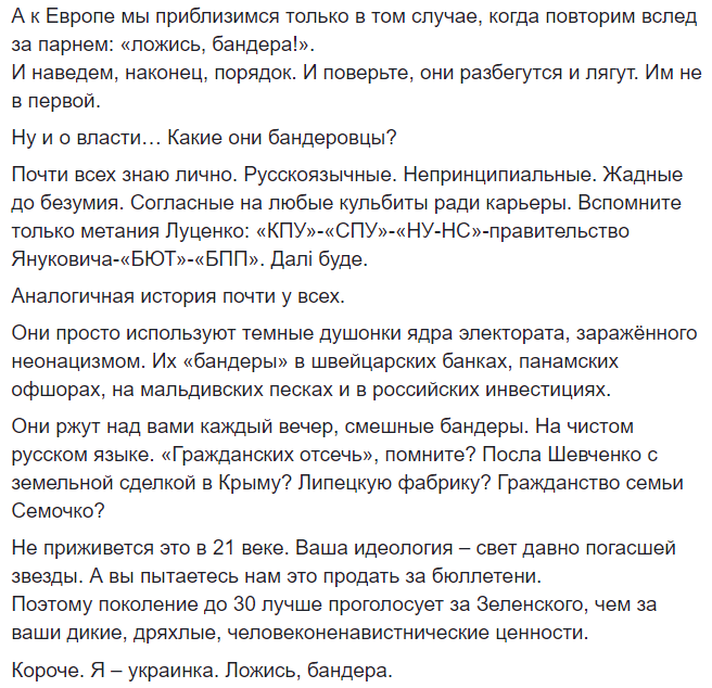 Короче. Я – украинка. Ложись, бандера".