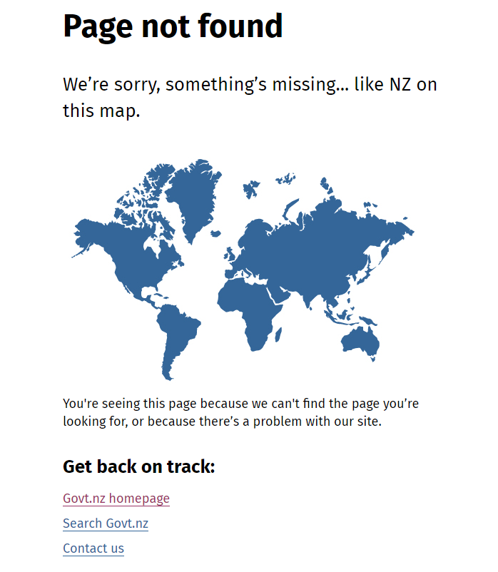 При этом правительство Новой Зеландии часто иронизирует по этому поводу. В качестве заставки правительственного сайта при ошибке 404 ("страница не найдена") выводится карта мира без Новой Зеландии с подзаголовком "Извините, чего-то не хватает".
