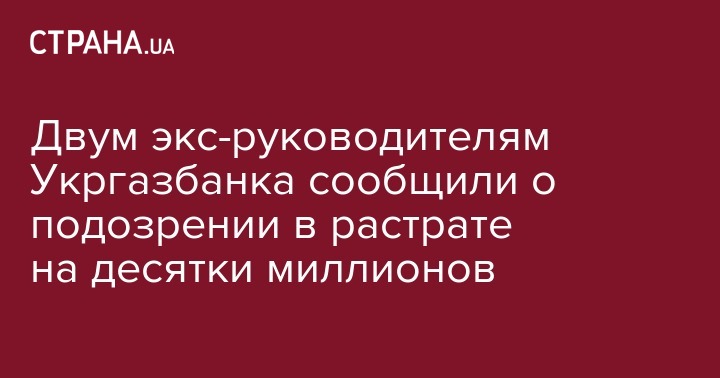 Двум бывшим топ-чиновникам банковского учреждения "Укргазбанк" и руководителю коммерческой структуры сообщено о подозрении в причинении убытков на 39 млн грн. Об этом сообщает Департамент защиты экономики Национальной полиции Украины.