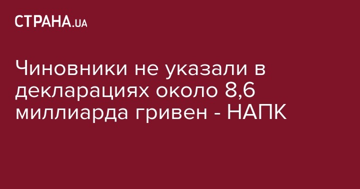 Национальное агентство по предупреждению коррупции (НАПК) сообщает, что должностные лица в своих декларациях указали недостоверные сведения на общую сумму более 8,6 миллиарда гривен. Об этом сообщает пресс-служба НАПК.