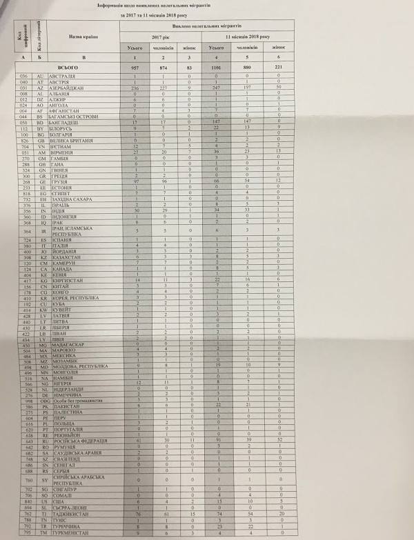 "За 11 месяцев 2018 побег в/через украинскую столицу пытались совершить 1101 человек. Для сравнения, в 2017 году Государственная миграционная служба зафиксировала 957 нелегалов, в 2016 – 575, 2015 – 313, в 2014 году – всего 182 граждан иных государств, прибывших в Киев без соблюдения процедуры въезда." , – отметил Пабат.