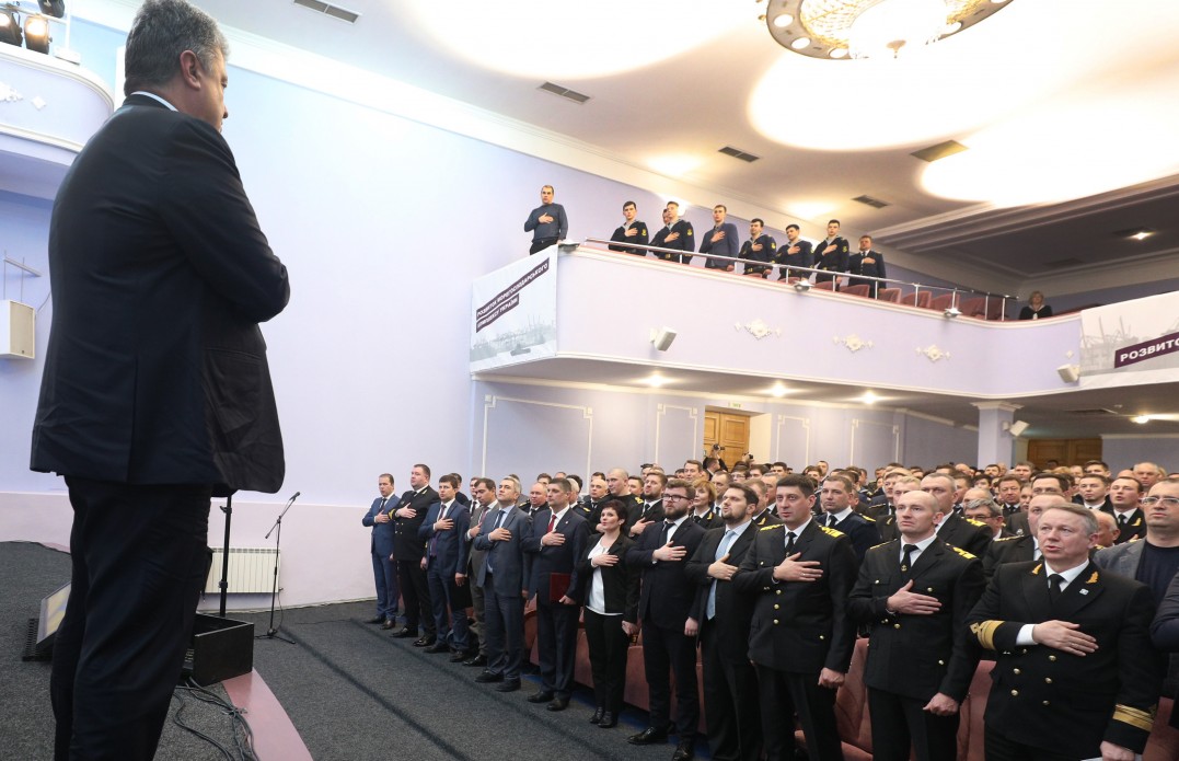 "Аннексия Крыма и агрессия России не повлияет на статус Украины как морской державы. Нам столько раз прогнозировали, что Украина не выдержит российского давления. Но, Украина выстояла... Украина будет активно двигаться в НАТО, чтобы суметь противостоять России", - сказал он со сцены.