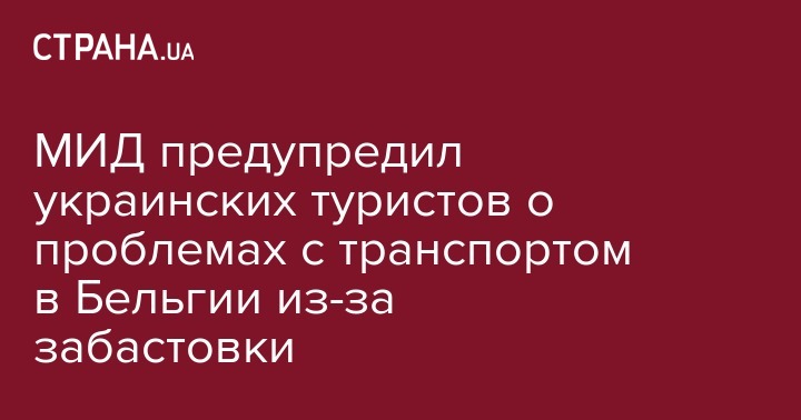 Украинское Министерство иностранных дел предостерегло граждан страны от поездок на территорию Бельгии из-за общенациональной забастовки, которая должна начаться в 22.00 во вторники и закончиться в 22.00 в среду (по местному времени), что приведет к изменениям в режиме работы транспортной инфраструктуры, передает "Интерфакс-Украина".