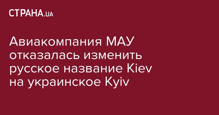Украинская авиакомпания МАУ отказывается исправить название города на Kyiv и продолжает использовать русифицированный вариант Kiev.