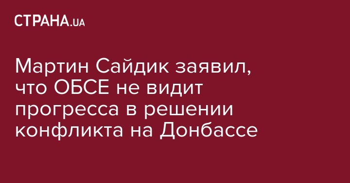 Спецпредставитель ОБСЕ в Трехсторонней контактной группе по урегулированию ситуации на Донбассе Мартин Сайдик, который на днях представил новый план мирного урегулирования конфликта на Донбассе взамен Минским договоренностям заявил, что приблизиться к урегулированию конфликта на востоке Украины за четыре года не удалось. Об этом сообщает "Интерфакс-Украина"
