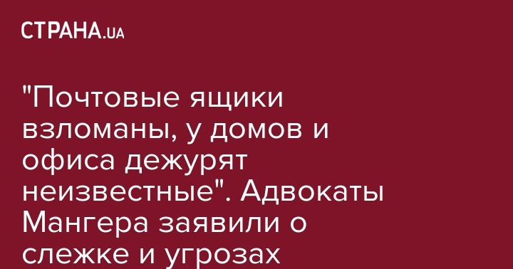 "Нашим адвокатским объединением осуществляется защита в деле Мангера - главы Херсонского облсовета. Со вчерашнего дня возле нашего офиса и возле домов всех адвокатов, которые осуществляют защиту, начали дежурить неизвестные люди. Телефоны взломаны, почтовые ящики тоже. Возле офиса - постоянные дежурства неизвестных автомобилей. На сегодняшний день мы обеспокоены за жизнь и здоровье наших адвокатов и наших семей", - рассказал Шевчук.