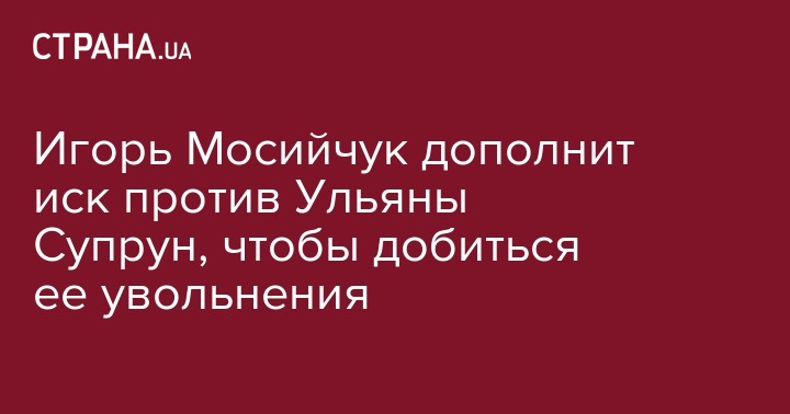 Также он проанонсировал, что еще один надреп от Радикальной партии Андрей Лозовой подаст "отдельный иск" против Супрун. Также Мосийчук выразил уверенность, что ему удастся добиться увольнения и.о. главы Минздрава. Также он планирует добиваться прекращения реформирования системы здравоохранения. Кроме того, Игорь Мосийчук отметил, что Кабмин должен безотлагательно внести на рассмотрение парламента кандидатуру министра здравоохранения.