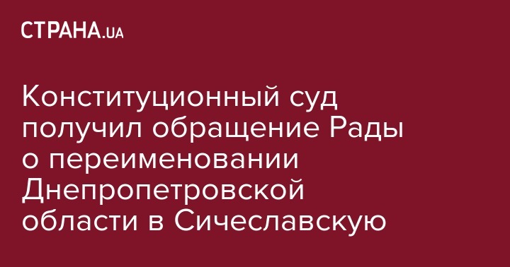 В четверг, 14 февраля в Конституционный суд (КС) Украины поступило обращение Верховной Рады относительно переименования Днепропетровской области в Сичеславскую. Об этом сообщается на официальном сайте КС.