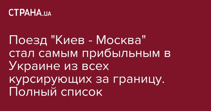 Самым прибыльным поездом, который курсировал из Украины за границу в 2018 году, стал поезд №5/6 "Киев-Москва". Об этом сообщают "Украинские новости", ссылаясь на ответ "Укрзализныци" на запрос журналистов.