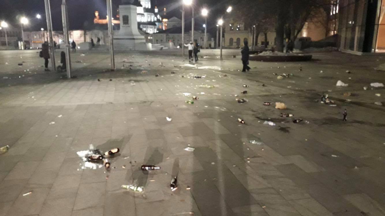 Обошлось без потасовок, но в центре города осталась гора мусора после шествия фанатов франкфуртцев.