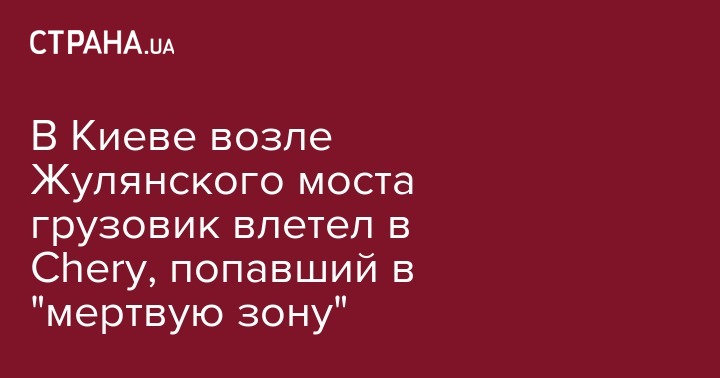 Сегодня, 15 февраля, в Киеве возле Жулянского моста около 06.00 произошло ДТП. Автомобиль Chery пытался обогнать грузовик, но попал в "мертвую зону", когда его не видно в зеркалах, в результате чего произошло столкновение, сообщает Информатор.