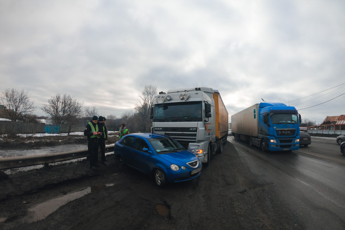 По словам водителя фуры, он направлялся в сторону Жулянского моста. Chery пытался обогнать грузовой автомобиль и перестроиться в один ряд с ним. Однако фура не пропустила "легковушку" и влетела в авто. В результате ДТП никто не пострадал. У Chery незначительно повреждена боковая передняя дверь.