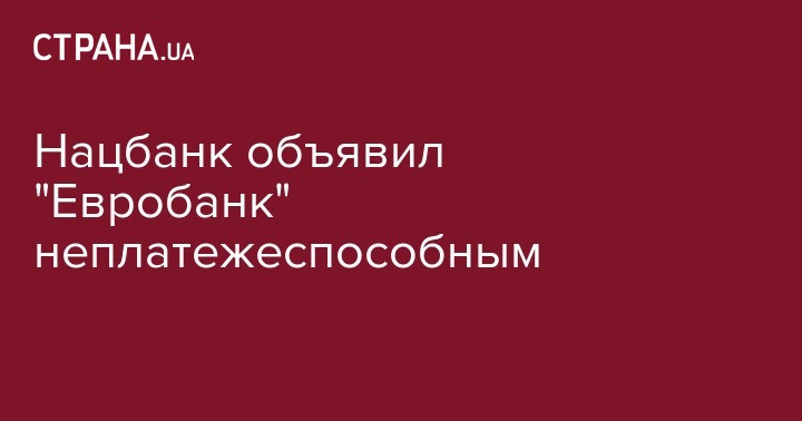 17 июня Национальный банк отнес Евробанк в категорию неплатежеспособных, сообщается на официальном сайте НБУ.