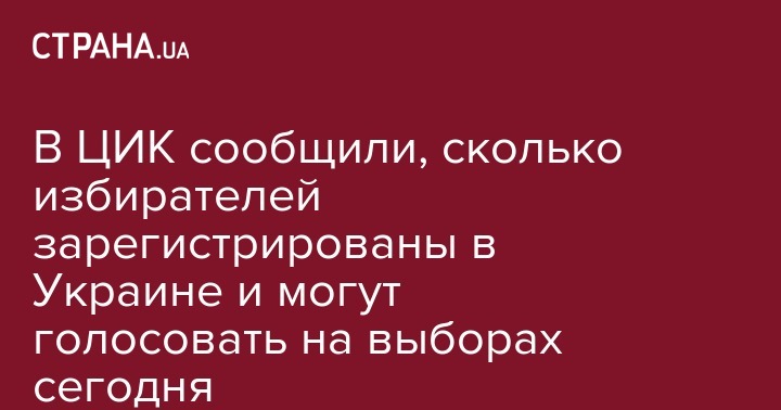 По данным главы ЦИК Татьяны Слипачук, в списки избирателей потенциально могут быть включены 29 млн 897 тыс. 548 украинцев, однако это не окончательная цифра. До 25 марта длится процесс изменения адреса для голосования, также не позднее чем за 30 дней до выборов будут созданы специальные избирательные участки.