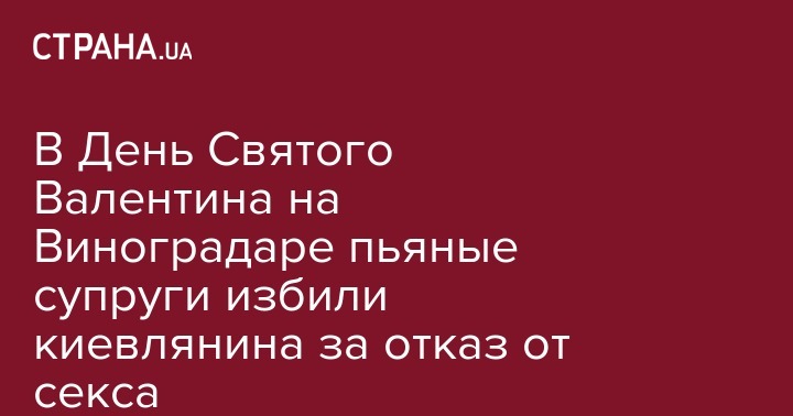 Вечером в четверг, 14 февраля, на Виноградаре в Киеве пьяная супружеская пара напала на прохожего и избила его, так как он отказался от секса. Об этом сообщает Муниципальная стража Киева на своей странице в Facebook.