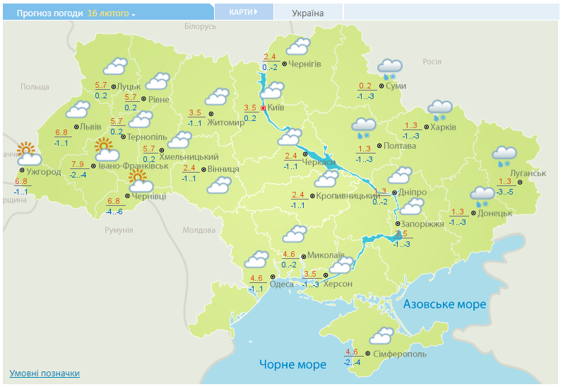 В субботу, 16 февраля, в Украине ожидается теплая погода, обильных осадков не предвидится. Об этом сообщает Укргидрометцентр.