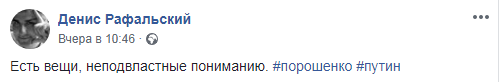 "Есть вещи, неподвластные пониманию", - пишет на своей странице в Facebook журналист Денис Рафальский.