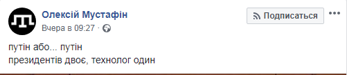 "Путин... Или Путин. Президентов двое, технолог один", - отмечает журналист Алексей Мустафин.