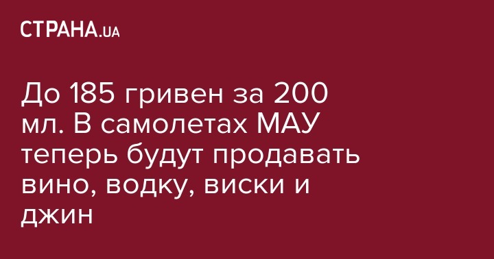 До 185 гривен за 200 мл. В самолетах МАУ теперь будут продавать вино, водку, виски и джин