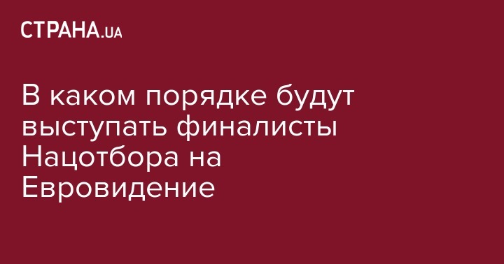 Во время второго полуфинала Нацотбора на Евровидение 2019 стал известен порядок выступлений всех финалистов в решающем прямом эфире, который пройдет 23 февраля. Жеребьевку провели после оглашения итогов голосования во втором полуфинале Нацотбора, за ходом которого "Страна" следила в режиме онлайн-трансляции.