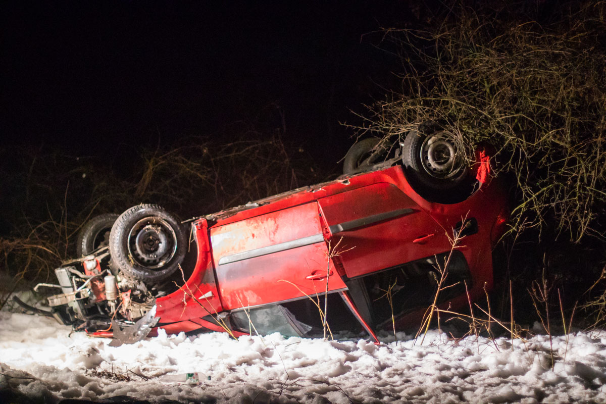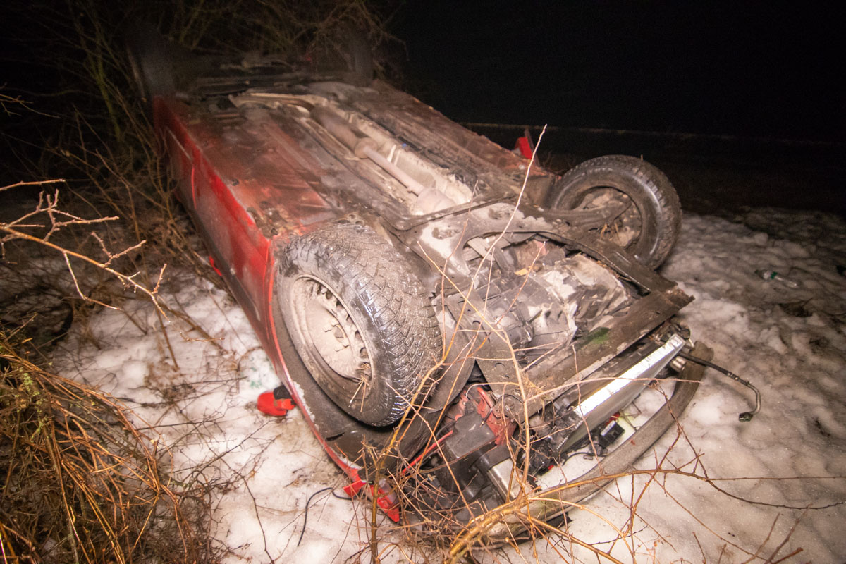 В воскресенье ночью, 17 февраля, на Новоирпенской трассе водитель Renault не справился с управлением и вылетел на встречку, потом ушел в кювет и перевернулся. Об этом сообщает "Информатор".
