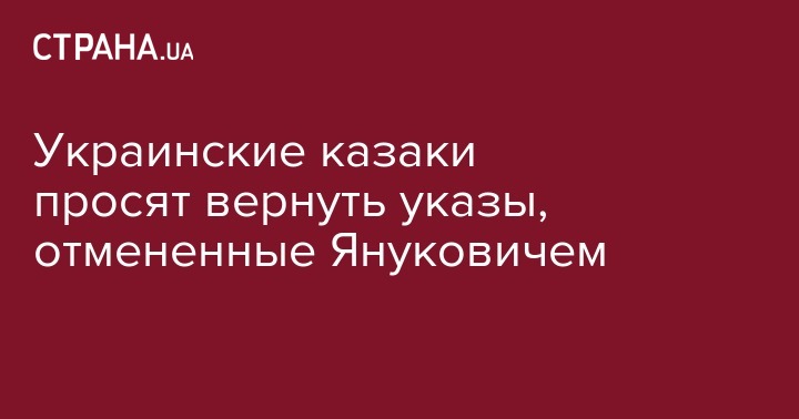 Главы организаций казаков выступают считают необходимым возобновить действие трех указов, регулирующих деятельность этой организации, которые были отменены бывшим президентом Виктором Януковичем в 2011 году.