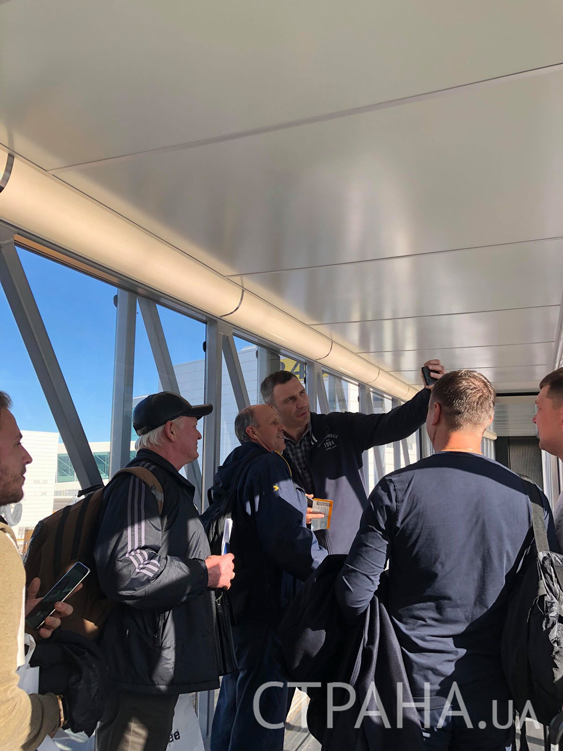 В руках мэра был небольшой дорожный чемодан и пальто, которое ему пришлось снять из-за весенней погоды в Мюнхене. Отметим, что в Киев Кличко летел один.