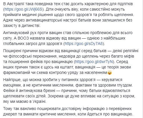 По данным Супрун, в Австралии такое поведение тоже становится весьма характерной для подростков. Дети ждут возраста, когда самостоятельно могут принимать медицинские решения относительно своего здоровья и делают прививки.