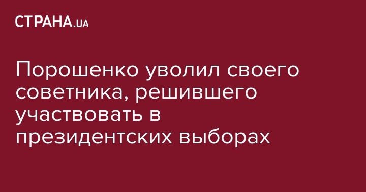 Президент Петр Порошенко уволил с должности своего внештатного советника, экс-главу СБУ (2003-2005) Игоря Смешко, который зарегистрирован кандидатом в Президенты на выборы 31 марта. Об этом говорится в указе Президента, копией которого располагают "Украинские новости".