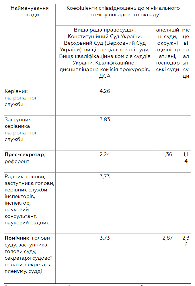 В частности, установлена такая схема должностных окладов работников патронатных служб в системе правосудия (в коэффициентах):