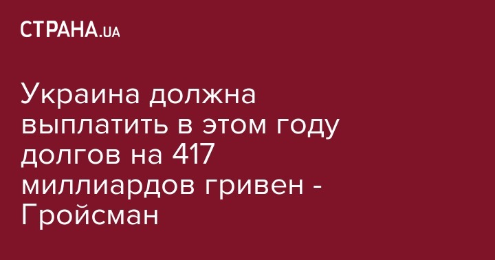 Премьер-министр Владимир Гройсман публично назвал сумму, которую Украине в этом году придется направить на погашение внешней задолженности. На эти цели уйдет почти четверть госбюджета, 417 миллиардов гривен.